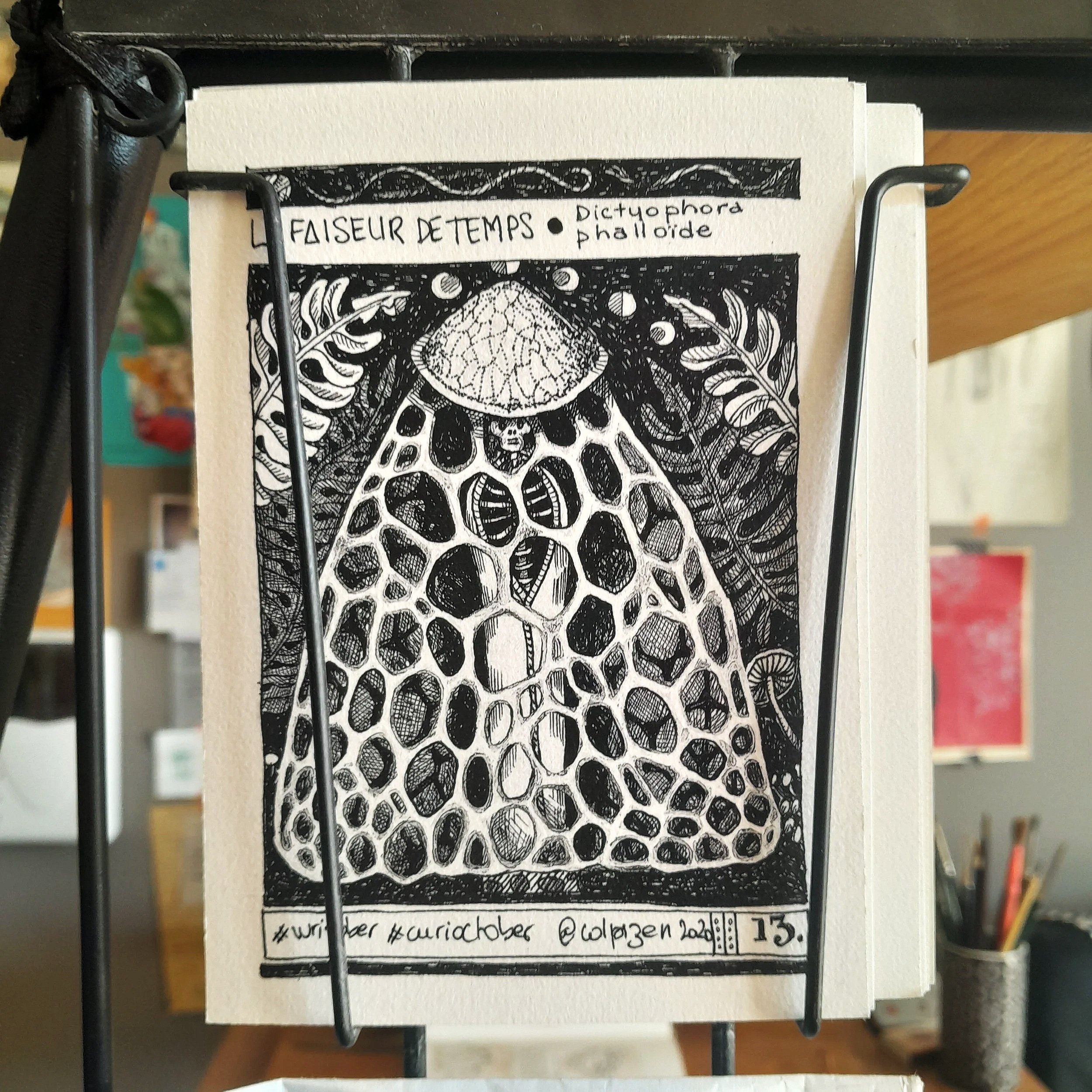 La liste du Curioctober de Marie (La Boîte à Curiosités) couplée à celle du Writober 2020 de Marion (Fuzziraptor), avec des illustrations imprimées en DIY (puisque le confinement 2020), un coffret en kraft A5 DIY aussi, et qui a été un franc succés en dépit du contexte compliqué.